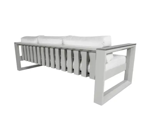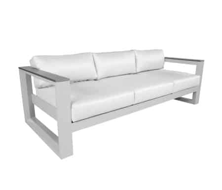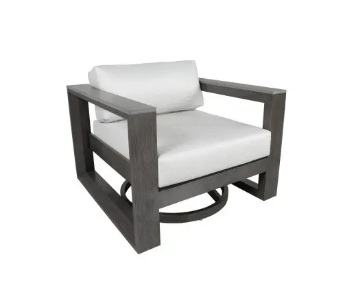 Inspired by the classic architecture of a raised structure offering a ‘fine view’ as it means in Italian, Belvedere is a collection of substantial nature. Accentuated by bold, chamfered edges and, Mica SOL Teak™ armrests, the robust profile of the Belvedere collection brings an immediate presence to any outdoor space. Belvedere is crafted from cast aluminum, finished with Tiger-Drylac® Grey or Sherwin-Williams® Patina paint, and is offered in deep seating or sectional options. Group photo cushions shown in 15000-0003 Spotlight Ash and 18″ x 18″ pillows shown in 145339-0006 Gable Stone.
