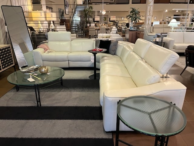 The Megalo sectional sofa in Alabaster leather is a beautiful choice when it comes to decorating your living or den area. It has adjustable headrests through out it’s body. High quality craftsmanship at a great price. All pieces are modular.