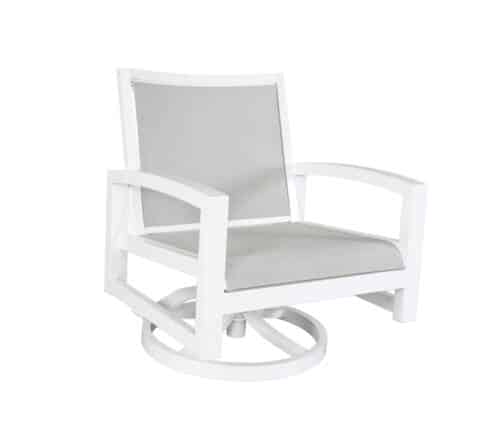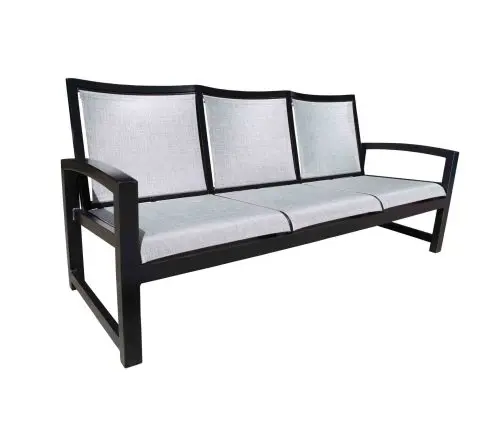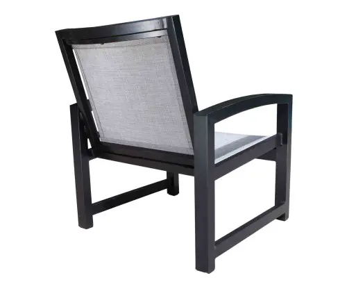 The contemporary, crisp lines of the Millcroft collection are constructed of durable cast aluminum frames which are powder coated for optimal corrosion resistance with Sunbrella Sling® fabric.