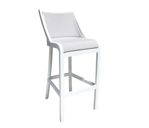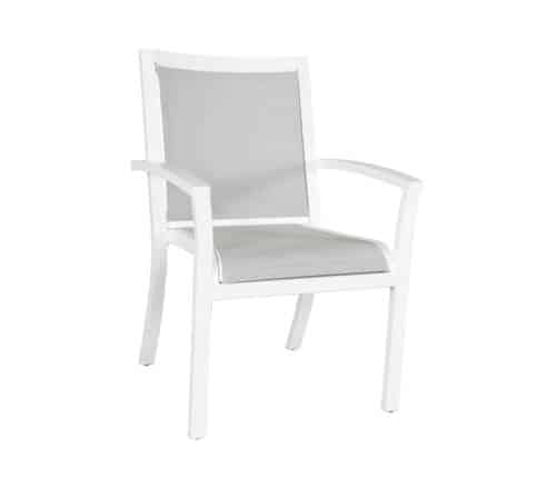 The contemporary, crisp lines of the Millcroft collection are constructed of durable cast aluminum frames which are powder coated for optimal corrosion resistance with Sunbrella Sling® fabric. Suitable for residential, commercial and poolside settings, this collection reflects our customers’ wish for luxury, function and ease. Quite unique in sling, Millcroft’s sectional furniture pieces can be configured to create a custom design with a modern twist. The Millcroft sectional collection is shown in Sunbrella Sling® Sailing Seagull on TigerDrylac® White cast aluminum frames. The Millcroft collection is also available in Sunbrella Sling® Augustine Pewter on AkzoNobel® Black frames.