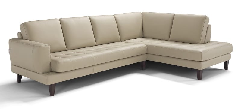 The Nevio Sectional is stocked in White leather with Wenge legs- 117″x 78″.