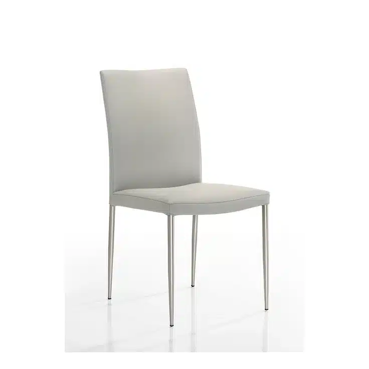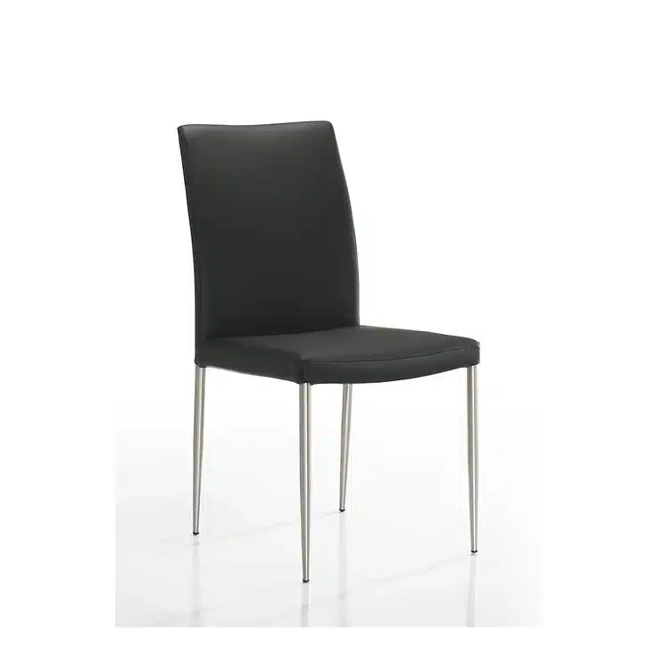 Simplicity mixed with Elegance wrapped in top grain leather and finished off with sleek thin brushed stainless steel legs. A perfect companion for any dining table. Â