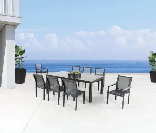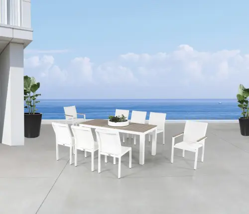 Relaxing in style is effortless with the Skye collection. The timeless, minimalistic profile and arched back add a subtle flair and superb comfort to this collection. Create a chic outdoor setting with two colorways: Black BatylineⓇ sling on a Black aluminum frame with Mica SOL Teak™ accents or White BatylineⓇ sling on a White aluminum frame with Umber SOL Teak™ accents. The Skye collection includes dining, deep seating, and, low-profile Spa and Sand seating options.
